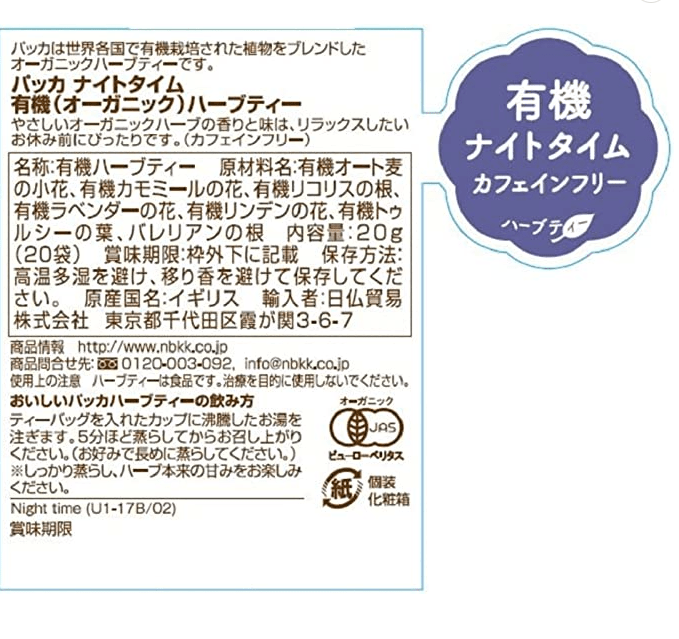 ナイトタイム 有機ハーブティー – 日仏貿易オンラインショップ (nbkk.co.jp)