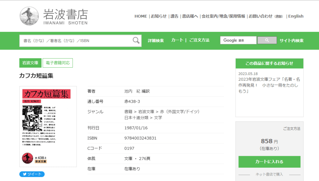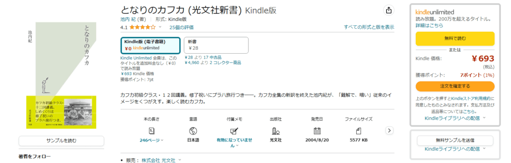 個人的には、この新書を絶版に追い込む光文社新書のレベルを疑うんですよ。池内先生は亡くなられてしまいましたが。この本はカフカをこれから読む人にとってはとても素晴らしい道しるべになっているからです。