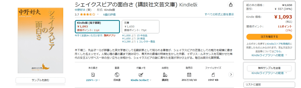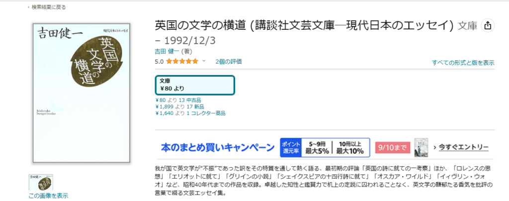 更には、吉田健一もシェイクスピアに触れているんですよ。なぜか講談社文芸文庫は重版かけなかったようで、もう手に入らないようです。私は購入しましたよ。