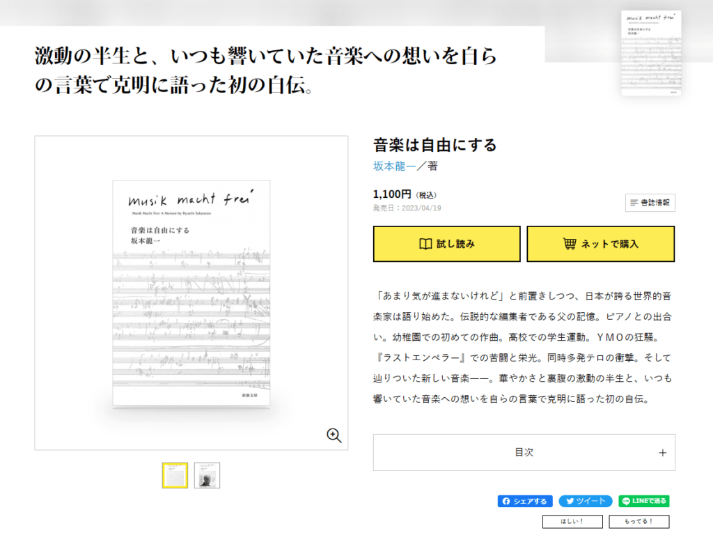 坂本龍一 『音楽は自由にする』 | 新潮社 (shinchosha.co.jp)