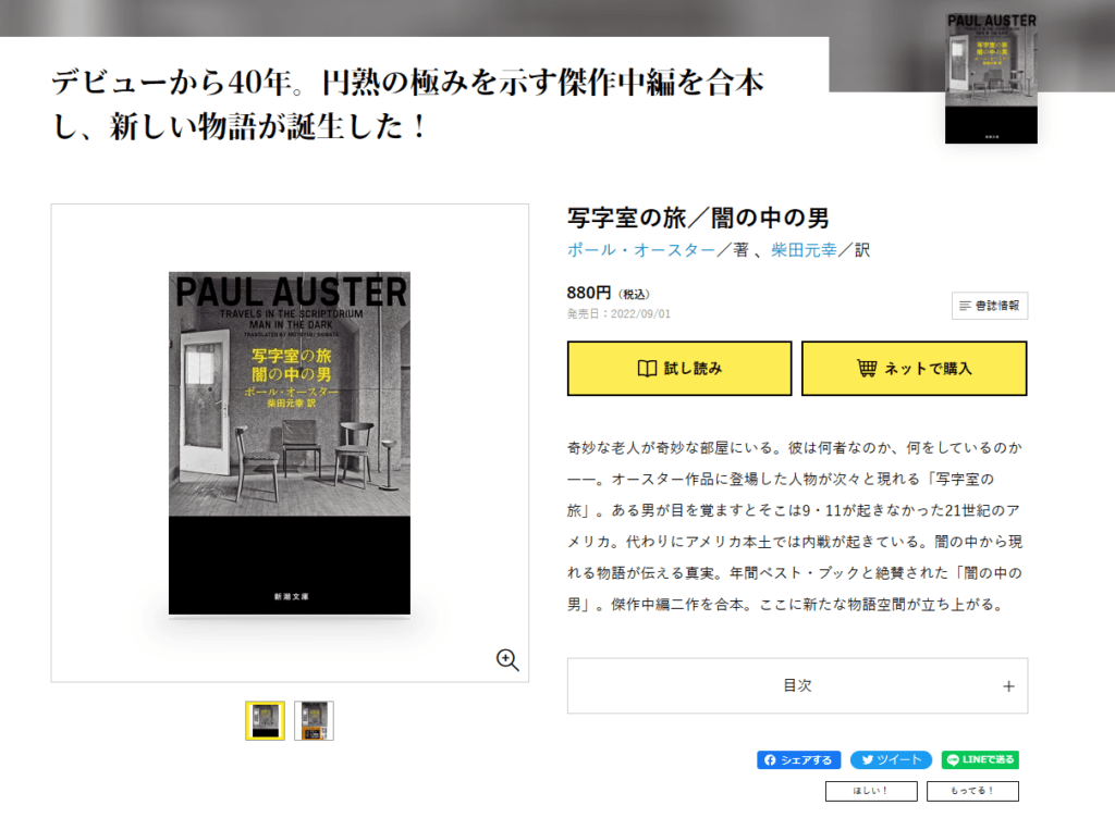 ポール・オースター、柴田元幸/訳 『写字室の旅/闇の中の男』 | 新潮社 (shinchosha.co.jp)