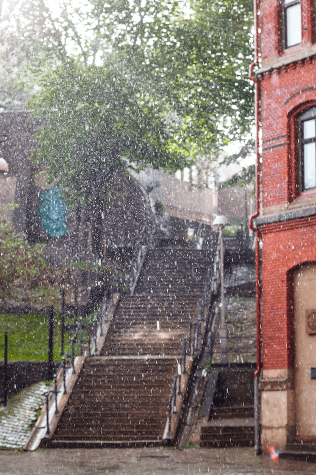 道を歩いていると、10メートルぐらい先で雨が降っています。