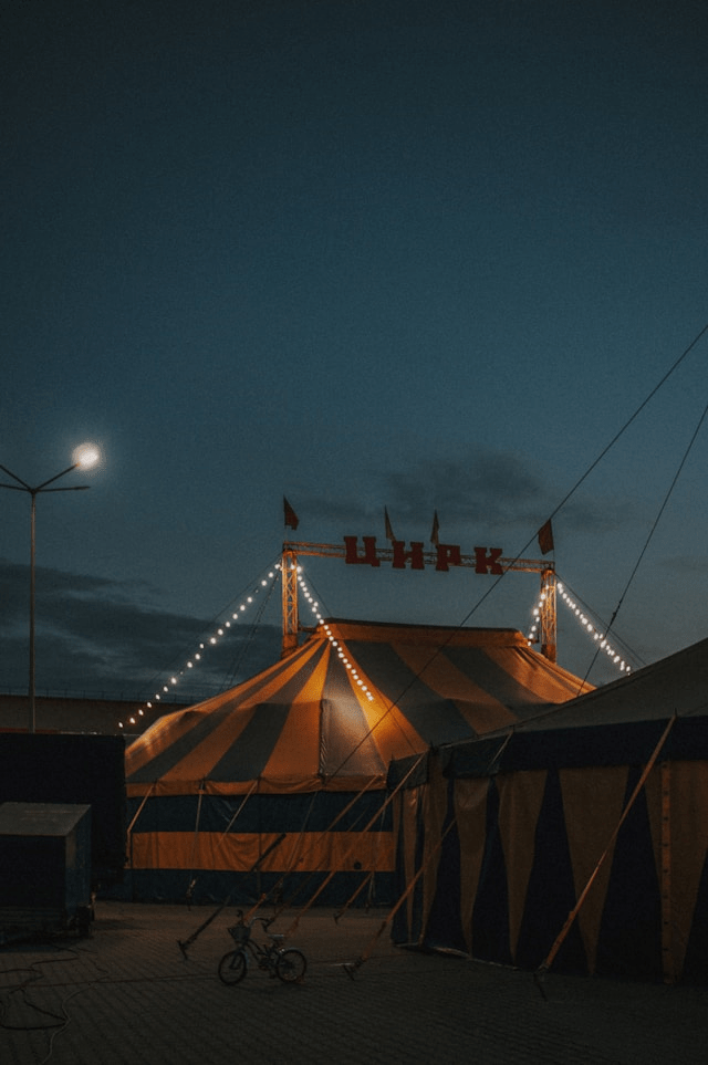 そして、風が吹いているので、サーカス団のテントも揺れるんですね。
