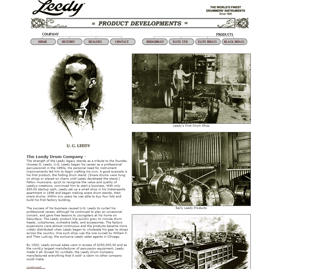 U.G.Leedyさんご自身がもともと、プロのパーカッショニストだったそうで。独自にドラムセットを組もうといろんな努力をなさったそうです。音楽仲間のなかでも技術力が評価されて、1989年にインディアナ州のインディアナポリスのアパートで50ドルを元手にして音楽のお店を開いたそうです。