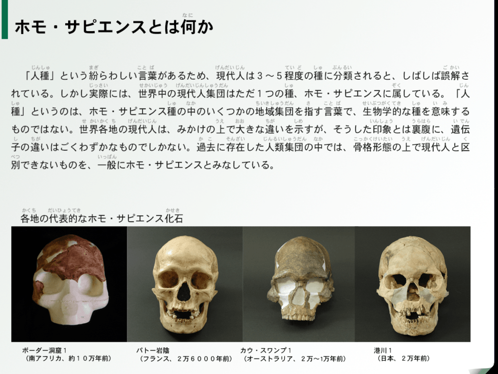 骨格形態では区別はできないのです。霊長類ヒト科では困難なのです。国立科学博物館から引用した図の右端にあるのは、沖縄で発見された港川人です。〇〇人って実は、かなりたくさんいるんです。