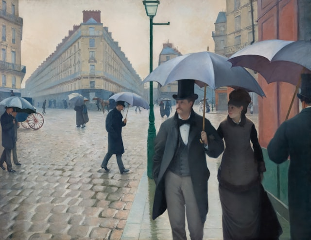 この絵画はGustave CaillebotteによるParis Street; Rainy Day(1877)ですが。