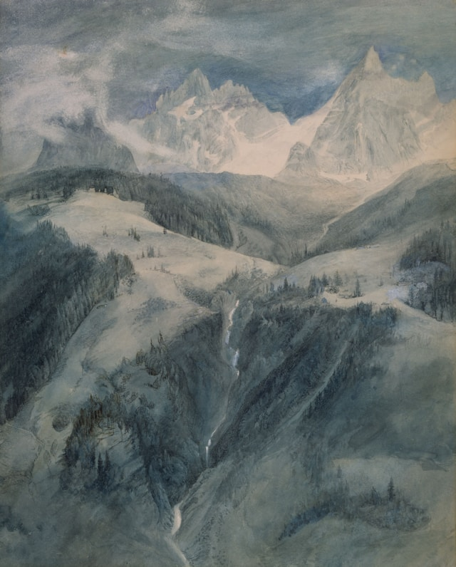 これは、 John Ruskinによる、Cascade de la Folie, Chamonix(1849)です。