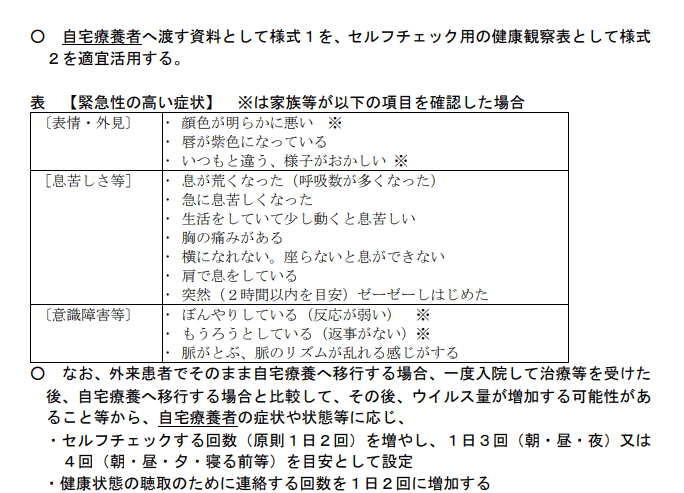暇な時間が増えると思いますが、体調の変化に注意をしましょう。リンクは貼っていませんが、自宅療養のための厚生労働省の添付資料からです。