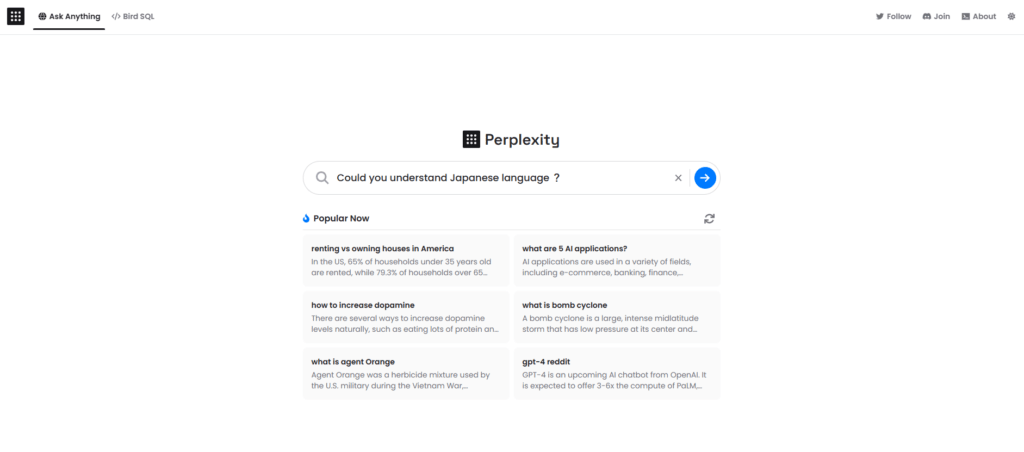 Perplexity AIは英語が出来る人だと誰でも使えます。結構、適当な答えが返ってくるんですよ。