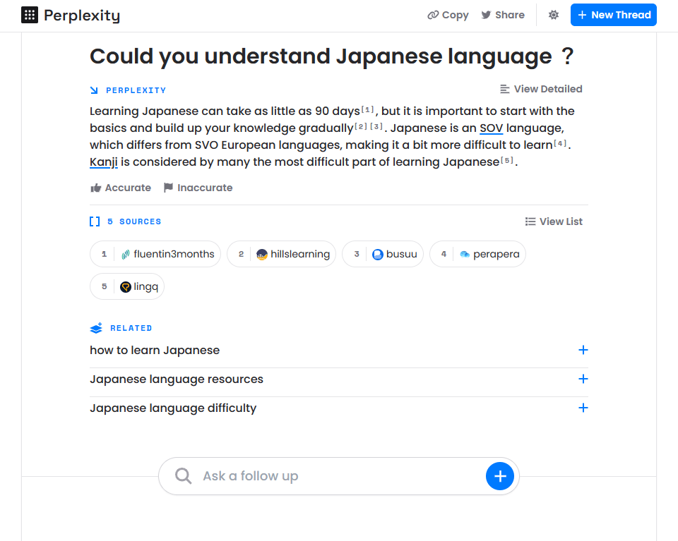 90日でわかる日本語なんてあったら、楽なんでしょうが。日本語というのは、実は、習得するには、かなり、むつかしい言語になるんです。Perplexityが理解できるのは第5文型なのかもしれません。文章としては、それ以上のレベルで文章を作ることが出来ています。ただし、文法的なミスも意味論的なミスもあります。