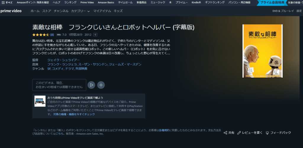 久しぶりに観たいなぁーって思うと、日本のアマゾンでは「このビデオは、現在、お住いの地域では視聴できません」ってなっているんです。