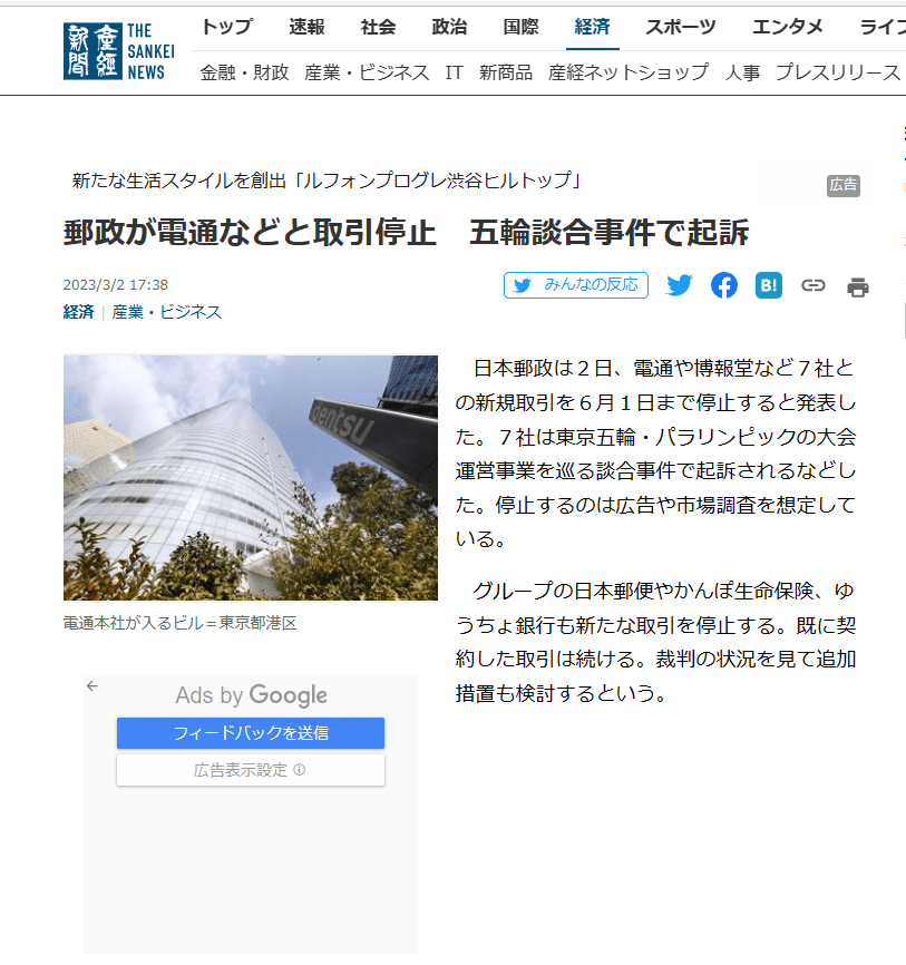 日本政府から少なくとも9ヶ月の新規取引の停止は履行されますし、電通グループとしてはかなりの痛手でしょうね。しょうがありませんよ。事実上の、公金横領のようなことをやっていたら、そうなりますよ。
