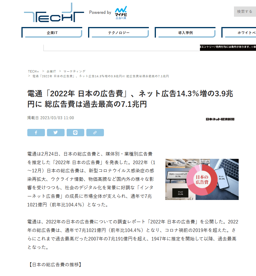 また、記事自体は虚偽は掲載できないので、きちんと広告が分類されたうえで、記載をされています。あくまで、電通による推定でしかないんです。最初に断り書きがありますよね。