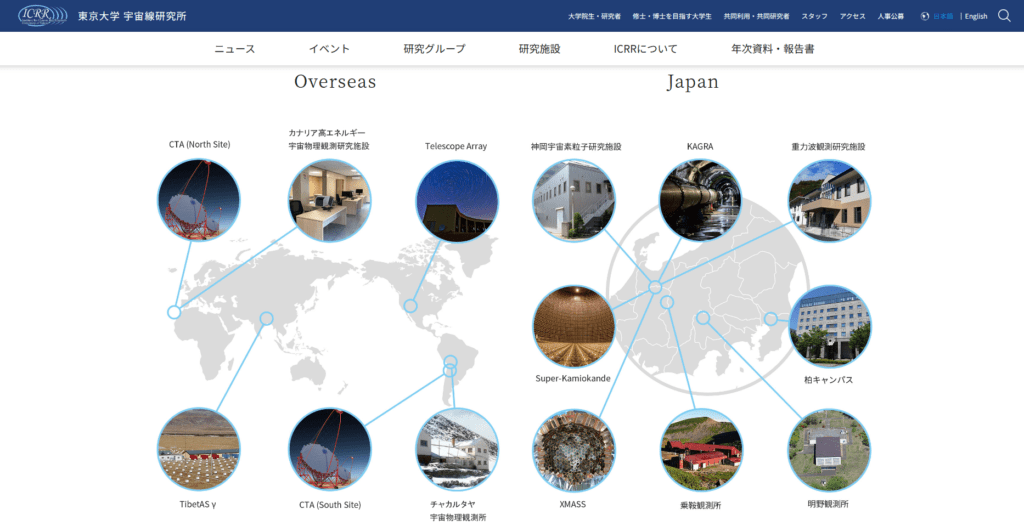 研究施設 | ICRR | Institute for Cosmic Ray Research University of Tokyo (u-tokyo.ac.jp)