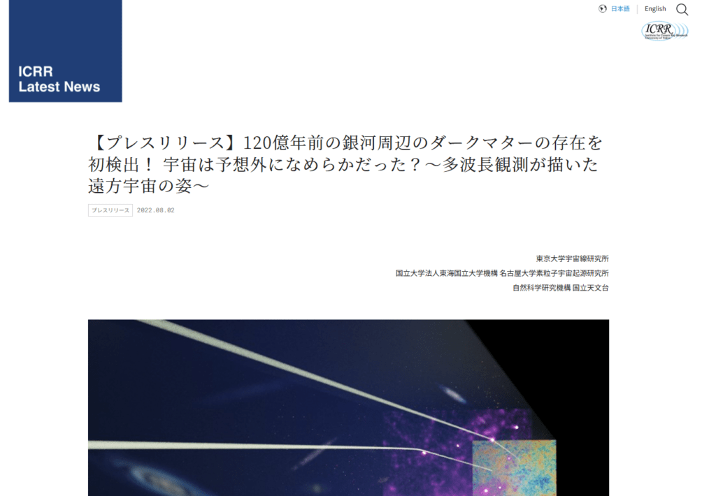 しかも、東大はいろんな大学の研究者と共同で研究を頑張って、2022年8月に、ダークマターの検出に成功したそうです。おそらく現在は検証中だと思いますが。